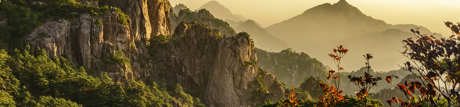 黄山,古称黟山,位于安徽省黄山市境内,地处安徽省南部、黄山市北部,地跨歙县、休宁县、黟 县和黄山区、徽州区,东起黄狮岭,西至小岭脚,北始二龙桥,南达汤口镇,地跨东经118°01′至118°17′、 北纬30°01′至30°18′,山境南北长约40千米,东西宽约30千米,总占地面积约1200平方千米,属亚热带季 风气候;以奇松、怪石、云海、温泉、冬雪“五绝”及历史遗存、 书画、文学、传说、名人“五胜”著称于世,有“天下第一奇山”“天开图画”“松海云川”之称